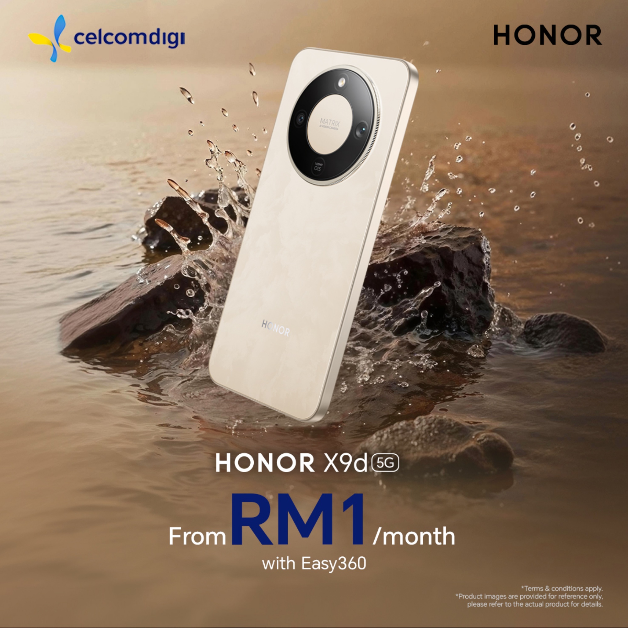 Starting with CelcomDigi, the telco is offering the HONOR X9d through its Easy360 programme. Depending on the plan, subscribers can acquire the phone for as low as RM1 per month. Aside from that, customers can get perks including 365 days crack protection, one year extended warranty, and accidental damage protection. While the telco has included all four colours on its website, the Forest Green and Sunrise Gold are listed as out of stock at the time of writing.